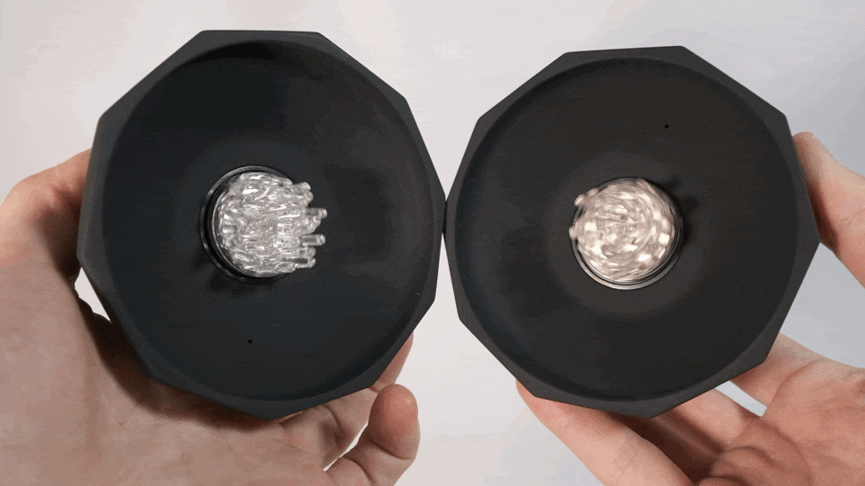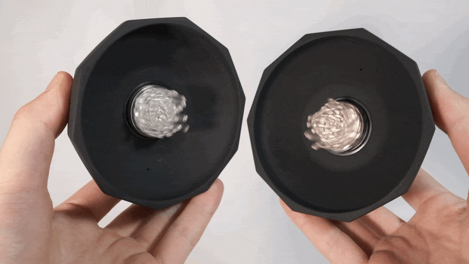 個々が独立した個体にカップの高さを12mm短くしたことで11g軽量化(1個153g)。カップのシリコンも厚みが増し、重厚感を感じるデザインに仕上がりました。