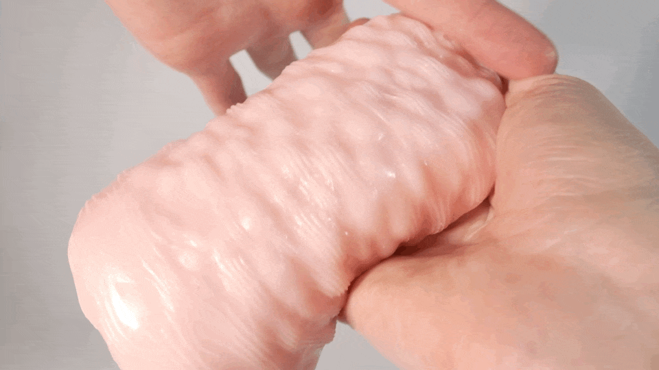 これがたとえば手に貼りつくほどのベタベタ素材なら、ローションを注いでもネチャーっと粘着してしまうため、ゾリゾリは薄れていたでしょう。